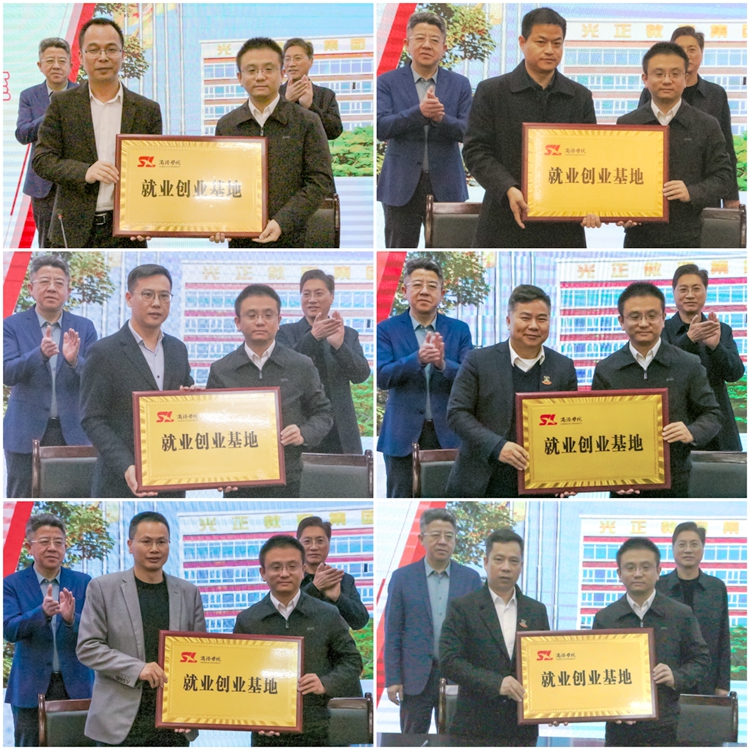 数计学院党委书记廉明分别与东莞市光明中学校长罗少聪、惠州市光正实验学校高中部副校长樊冬至、东莞市光正实验学校初中部副校长付天河、中山市光正实验学校初中部校长付宏思、佛山市禅城区光正实验学校小学部校长朱传冬、佛山市顺德区光正实验学校综合办主任卢希成签订了大学生就业创业基地建设协议并授牌。