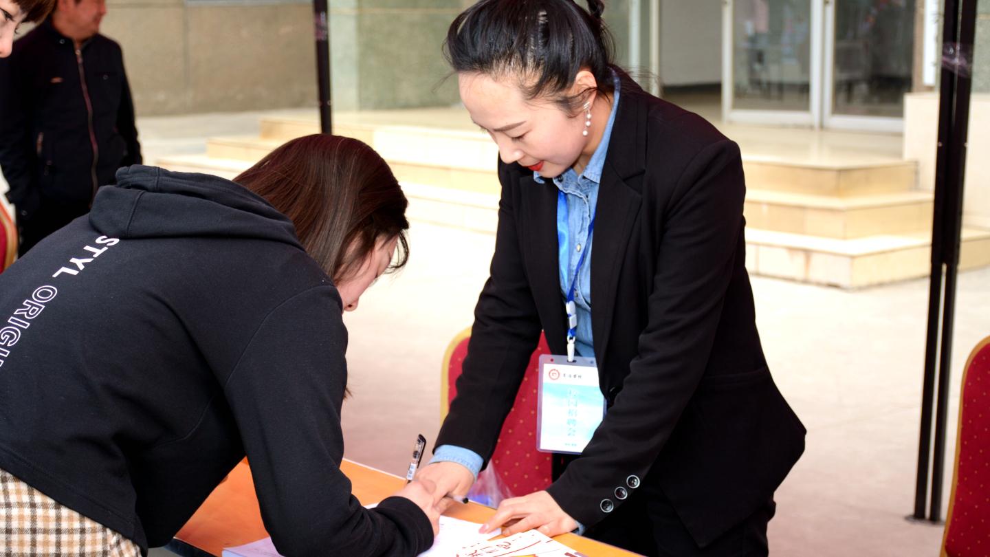 江苏丰山集团股份有限公司、西安梦端科技网络公司、陕西国研软件科技有限公司、石家庄市深泰化工有限公司等140多家来自全国各地的企事业单位和教育机构在招聘会上与毕业生现场交流洽谈,提供岗位涉及电气机械,基础教育,生物制药,文化旅游,财务会计等领域。招聘会现场还特别设立政策咨询处,为参会毕业生提供咨询服务。招聘会现场人山人海,参会学生积极了解各单位的招聘岗位信息、薪资待遇等情况,不少毕业生找到了心仪的岗位,现场签订了就业协议。