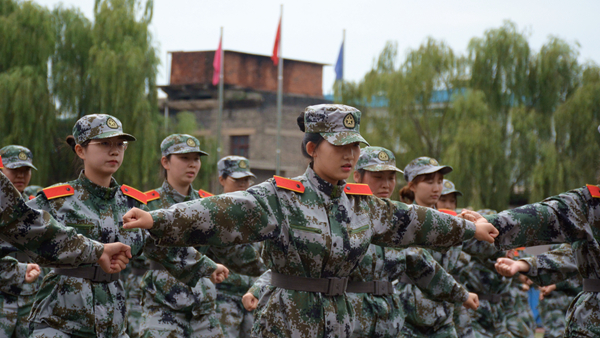 分列式结束后,学生依次进行了匕首操、五步拳汇报表演。女兵们表演的匕首操动作铿锵有力、一气呵成,尽显“铿锵玫瑰”风姿。全体参训学生共同完成的五步拳表演,出拳虎虎生风、刚劲有力,每一个动作都干净利落,挥舞间游刃有余,博得大家的阵阵喝彩。