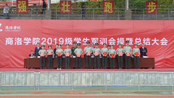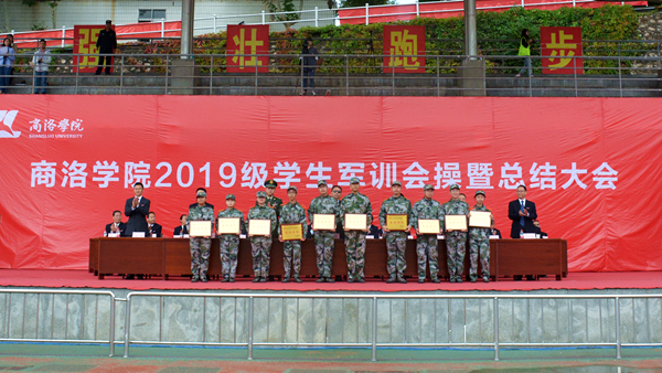 汇报表演结束后,与会领导分别为军训队列先进集体、军训内务整理先进集体、军训工作优秀教官、军训工作先进个人、参训优胜标兵代表颁发了奖牌和荣誉证书。