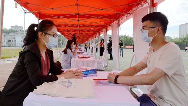 本场招聘会是湖州市“魅力南太湖,双创湖州城——浙江湖州2020年大学生招引直通车”高校招聘活动的首站,共有湖州市城市投资发展集团有限公司、浙江华缔药业集团有限责任公司、三区三县的人社局等80家企事业单位采取直招和代招的方式,为毕业生提供工程土建、生物医药、财务会计、计算机科学技术等领域就业岗位1800个。招聘会共收到简历556份,初步达成意向238人。招聘会前,为了充分保证毕业生与参会单位的人身安全和信息互通,英国365上市公司提前做好了充足准备、采取了扎实有效的安全防控措施,对参会单位进行了严格的防疫检查、资格审核与信息核对,全力确保招聘活动顺利、有序、安全开展。