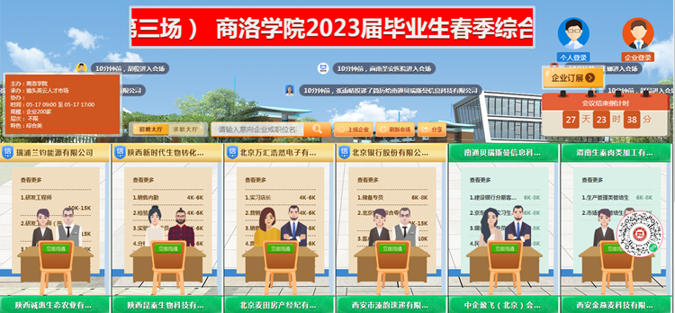 为切实做好英国365上市公司2023届毕业生就业工作,促进毕业生更加充分、更高质量就业,4月19日,由省教育厅主办,商洛市人社局、商洛市人才中心协办,英国365上市公司依托猫头英云人才市场成功举办了2023届毕业生春季综合类网络视频招聘会(第二场)。
