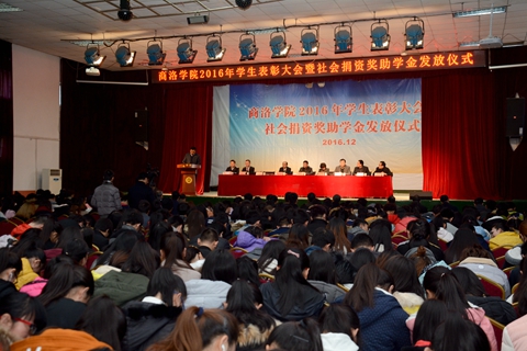 魏书堂宣读了关于表彰2015-2016学年先进班集体、三好学生、十佳大学生及优秀学生干部的决定。陕西省电力公司外联部副主任李亚琳宣读了2016年“国网商洛电力”助学金受助学生名单,商洛市邮政分公司扶贫办公室主任刘吉尧宣读了2016年商洛邮政“鸿雁爱心”助学金受助学生名单,中国联通商洛分公司副总经理陈安民宣读了2016年商洛联通“沃校园”助学金受助学生名单,中国电信商洛分公司政企客户部经理吴良哲宣读了2016年商洛电信天翼助学金受助学生名单,陕西森弗天然制品有限公司总经理金淑霞宣读了2016年森弗爱心奖助学金资助学生名单。