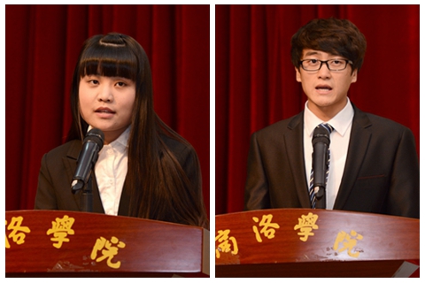 生物学院学生侯瑶、经管学院学生赵文辉分别代表受表彰的先进个人和受资助学生作了大会发言。