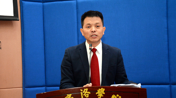 彭虎军代表学校和全体师生对李玉望时刻关注母校发展、关心学弟学妹成长成才的善举表示感谢。他向师生们阐释了“正德笃行”奖学金的由来、设立和评定过程,并对同学们提出了四点希望:一是不忘初心,养成良好的学习和生活习惯,练就过硬的本领,做一名对国家、对社会有用的人才;二是勤学善思,认真学好专业知识,不断提升德行修养,养成善于学习、善于思考、勇于探索的良好习惯与魄力;三是善于创新,树立创新思维,敢于创新、勇于创新、大胆创新,播种智慧,潜心钻研;四是接续爱心,自发树立“自助者助人,助人者自助”的大爱意识,将“正德笃行”所蕴含的爱心责任的大旗扛起来,将自助助人的美好梦想传递下去。