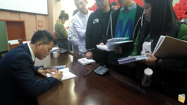 发放仪式结束后,李玉望为师生们作了题为《创新创业的几点体会》的专题报告,并为师生们签名赠阅了书籍《醒来:知行合一传习读本》。报告中,李玉望结合自己求学、创业、守业的工作历程、生活历程、心路历程,勉励同学们立长志而不常立志;不忘初心、发挥优势;量宽得人、身先率人、律己服人;在逆境中坚忍不拔,茁壮成长。整场报告突出大学生创新创业的新思路、新理念、新目标,对广大学生产生了深刻的启发与触动。同学们纷纷表示受益匪浅。
