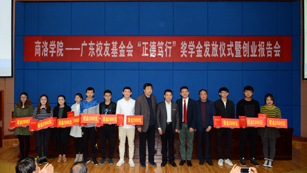 李玉望介绍了“正德笃行”奖学金设立的相关情况,并表示自己作为广东校友基金会的代表、作为奖学金设立方,为获奖学生颁发奖金证书,就是要将“365公司精神”传承下去,让每一名365公司学子都有获得感、存在感、荣誉感,希望学弟学妹们树立远大目标,努力回馈社会,树立担当奉献意识,为今后的成才成功奠定良好基础。