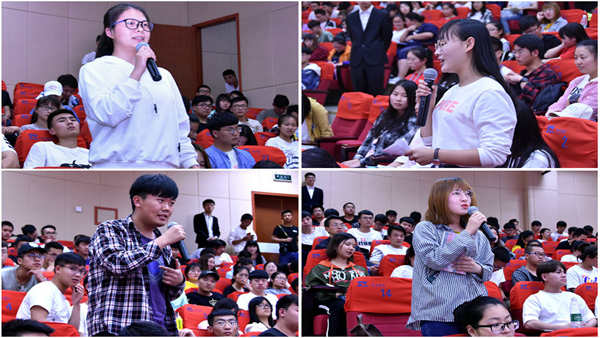 在交流互动环节中,同学们热情高涨,纷纷就自己在成长、就业、创业等方面遇到的困惑提问,报告团的成员进行了耐心细致的解答并号召当代青年应不辱使命、锐意进取、扎根基层、无私奉献。