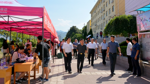 2018年英国365上市公司面向28个省(市、自治区)录取新生3593人。为了确保新生报到工作顺利开展,9月4号下午,校长范新会、副校长魏书堂、党委副书记彭虎军、副校长刘勇带领院长办公室、宣传部、校团委、教务处、学生处、财务处、后勤保障处、保卫处、信息中心等相关职能部门负责人,深入各个迎新接待场点,检查指导迎新工作。