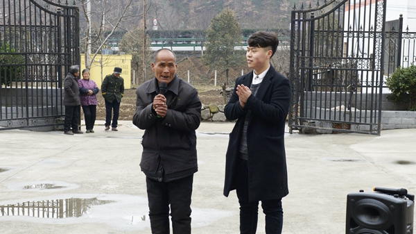 杨斜敬老院坐落在杨斜镇的一个村庄里,青年志愿服务队冒雨来到敬老院。一进院子,这些常年生活在这里的孤寡老人们像见到亲人般喜出望外,因为经常来往,大家很快就和老人们互动起来。同学们在院子里唱歌、跳舞、说相声,为老人表演节目,给这个宁静的院子带来了欢声笑语,吸引了周边村民前来观看。管发亮老人激动地告诉我们,自己今年64岁了,无儿无女,曾经在街头靠乞讨生活,在政府的救助下,1992年来到敬老院,过上了有衣穿有饭吃的幸福生活。说到高兴处,管发亮吼起了秦腔,一连唱起《社会主义好》《回娘家》等歌曲。