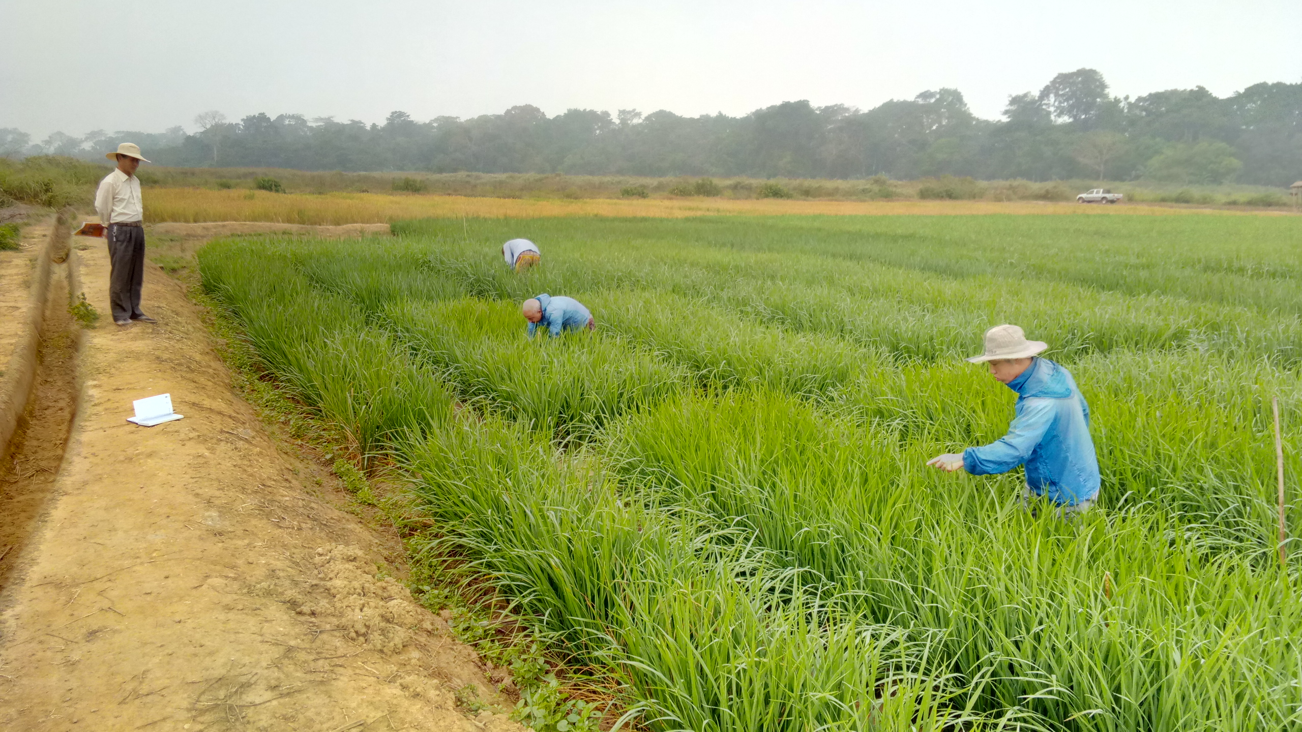 面对艰苦的条件,张军没有退缩,治疗稍有起色,又投入工作了。当时正值水稻育秧时节,为了提升培训效果,张军和队员们挽起裤腿,光脚走进水田进行插秧现场示范,每次都被蚊子叮咬得满腿是包。灌溉渠年久失修,加之沿途农户拦流灌溉捕鱼等现象严重,水稻生长季不定期步行巡修位于雨林身处的水渠,沿途蚂蚁咬得人跳起来,也会偶遇“黑曼巴”。