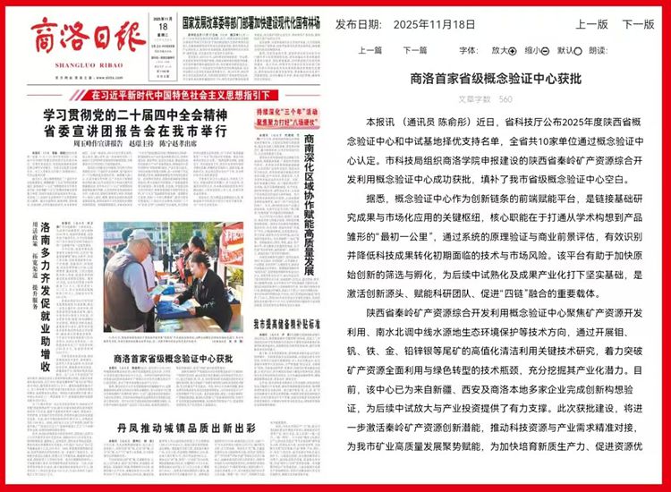 商洛日报:商洛首家省级概念验证中心获批