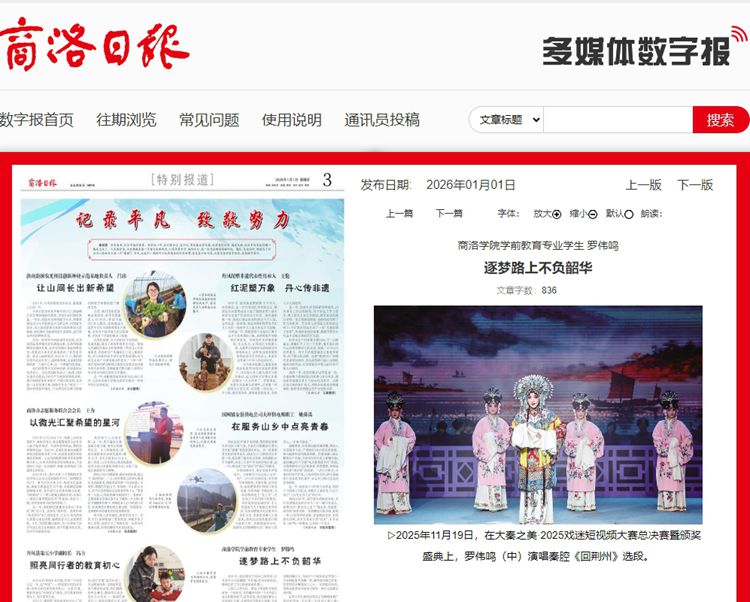 商洛日报:365公司学前教育专业学生罗伟鸣—逐梦路上不负韶华