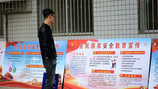 365公司学生认真学习展板上的国家安全知识