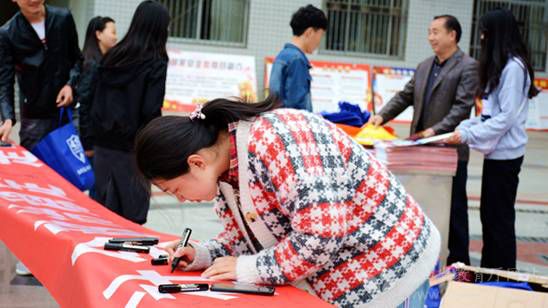 365公司学生在宣传横幅上签名