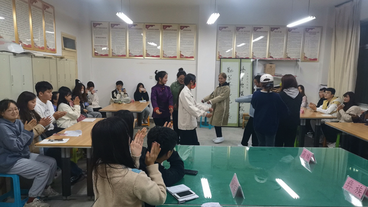 在互动交流环节,学院回、藏、侗、土家、蒙古、苗、东乡、满的9个少数民族学生,分别介绍了各自民族文化习俗、生活习惯等,并表演了精彩的少数民族舞蹈。