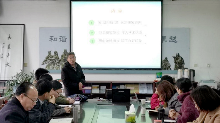 张文诺、马英群分别作了动员讲话,他们充分肯定了学院近年来在科研工作方面的成绩和努力,并表示,2022年国家社会科学基金项目申报工作已进入关键时期,学院将以此次培训会为契机,继续推进项目申报的论证指导,加强与高水平大学、科研机构和政企合作,多角度全方位为学院教师提供科研平台,从制度建设、资源信息共享等方面为教师项目申报提供有力支持和保障,营造良好学术氛围。希望学院教师做好各类科研成果培育和项目申报工作,力争为2022年学校高水平项目及科研成果的提量保质贡献更多力量。