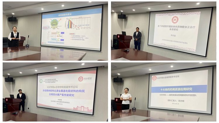 两院科研创新团队骨干分别根据自己的研究领域、技术专长以及代表性研究成果进行了汇报和研讨,化材学院功能分子与能源材料研究创新团队、MOF基功能材料热化学创新团队与生物学院商药资源及药用新材料开发团队达成了初步合作意向。