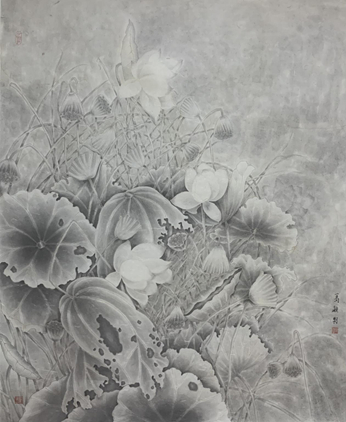 葛颖《荷韵抚风》国画