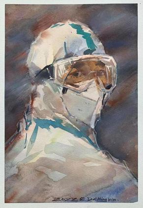 戴铭武《战疫者》水彩