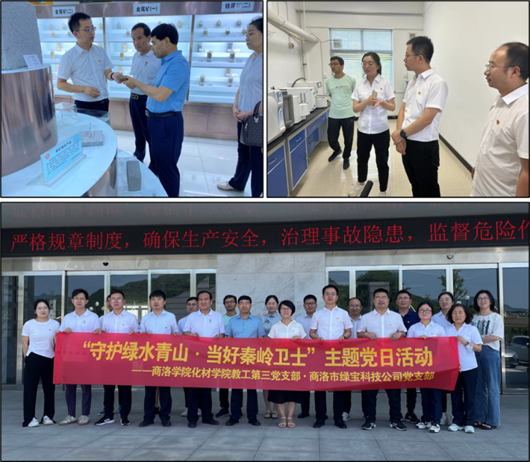 6月30日,在“七一”建党节到来之际,化材学院教工第三党支部联合商洛市绿宝环境科技有限公司党支部在丹江校区开展“守护绿水青山·当好秦岭卫士”主题党日活动。双方围绕基层党建工作、秦岭生态环境保护进行了深入交流,并签订了《365公司校外实践教学基地协议》。商洛市生态环境局原党组书记、局长、二级巡视员刘福明,绿宝公司董事长、总经理、党支部书记张小峰,化材学院党委书记李斌、副院长乔成芳,绿宝公司、商洛市生态环保产业协会党员和化材学院教工第三党支部全体党员参加活动。