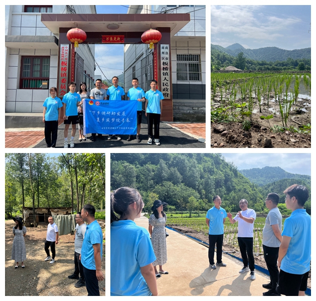 7月25日,实践团队抵达商州区板桥镇,在驻村干部秦朝书记的带领下,实践团队先后走访调研了连湾村水稻试验田项目、生态养殖产业和下湾村农业科技示范基地,实践团队现场为当地农户宣传了习近平总书记关于“三农”工作的重要论述,了解了农户们在发展过程中的难题和诉求。随后,实践团举行了“深入走访调研,共促乡村振兴”汇报会,就走访乡村的基本概况、发展现状、当前问题与解决方案等方面问题与驻村干部进行了交流沟通。实践团队建议板桥镇坚持因地制宜策略,可积极规划建设田园采摘区、游乐拓展区、艺术写生区、观光休闲区、民宿露营区、浪漫花海园等“五区一园”,助力乡村经济发展,实现群众共同富裕。