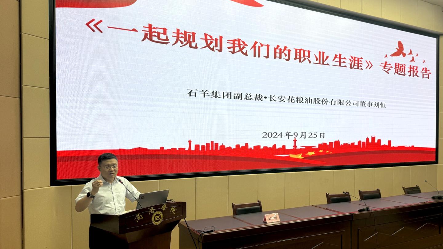 为引导2025届毕业生正确认识就业形势,推动毕业生实现高质量就业,9月25日下午,经济管理学院举办职业生涯规划专题指导报告暨2025届毕业生就业创业工作启动会。石羊集团副总裁、长安花粮油股份有限公司董事刘恒,学院党委副书记贾长安,长安花粮油股份有限公司相关人员以及经管学院毕业班辅导员、全体2025届毕业生参加会议。动员会由贾长安主持。