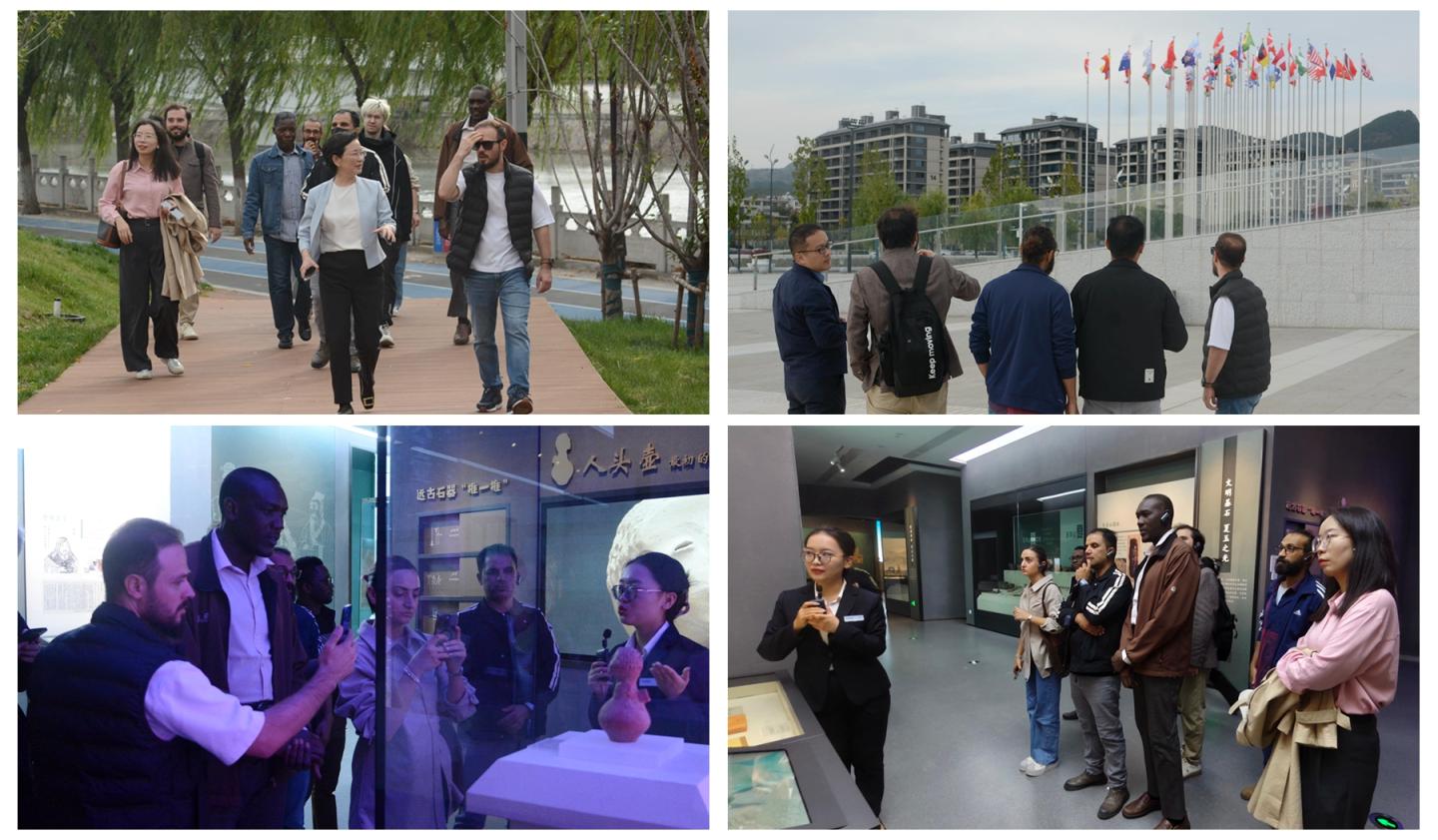 外籍专家们集合后,经由亮化提升后的通江路黄沙渠,步行至丹江公园望江楼并合影留念,再至商州群众运动公园。在秦岭博物馆,外籍专家重点参观了商洛历史文化展厅及商洛革命记忆展厅。通过欣赏沿途的生态自然景观、地标建筑,外籍专家充分感受了湿地公园的自然风光与竞技体育魅力,体会到了商洛“山水园林生态旅游城市”的特色风情,深入了解了大秦岭自然生态历史人文和地方特色非遗,“沉浸式”感受秦岭祖脉文化和商洛文化历史。