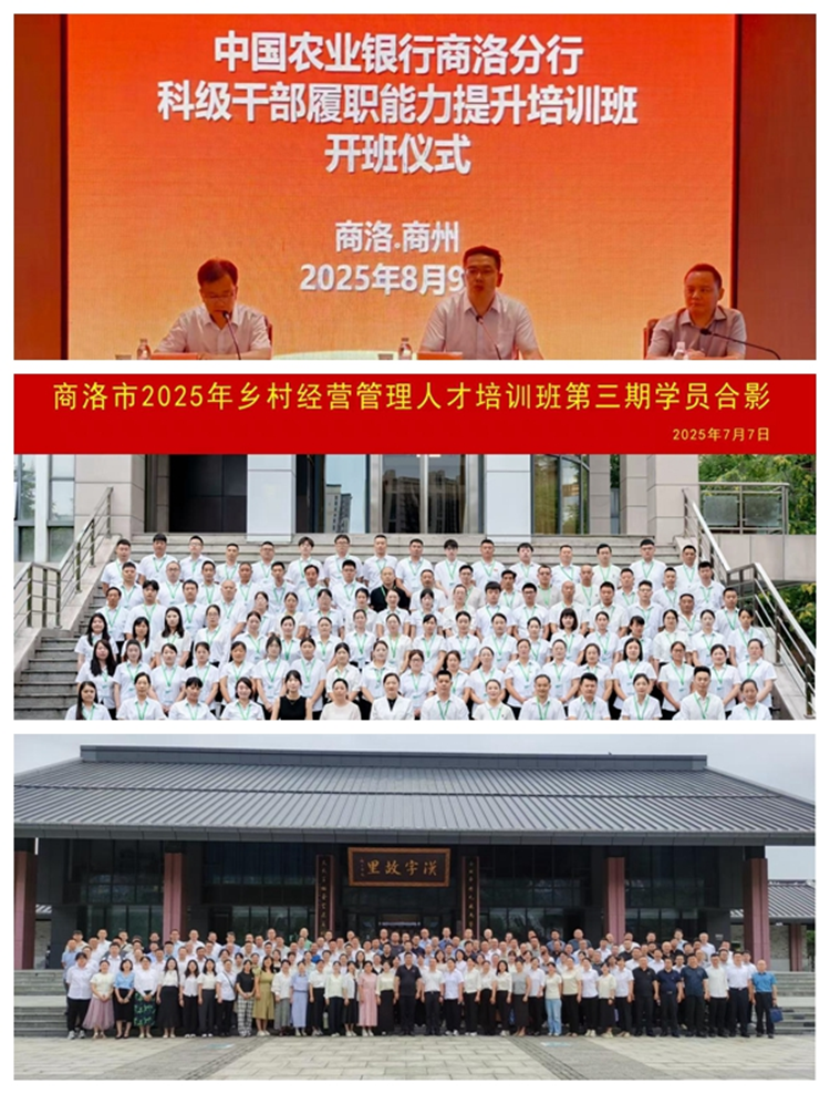 学院培训中心紧扣乡村振兴、干部履职、教育发展等重点领域,精心打造8 个专项培训项目,覆盖乡村人才、企业干部、教育管理者及教师等群体,累计培训超 800 人次。举办“商洛市第三期乡村经营管理人才培训”,为中国农业银行商洛分行量身开展“科级干部履职能力提升培训”,组织“市直机关基层党支部书记示范培训班” 赴洛南开展红色教育。