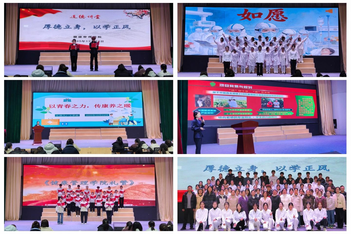 12月24日,健康管理学院在八号教学楼大学生活动中心举办“厚德立身,以学正风”主题道德讲堂,学院师生代表300余人参加活动。
