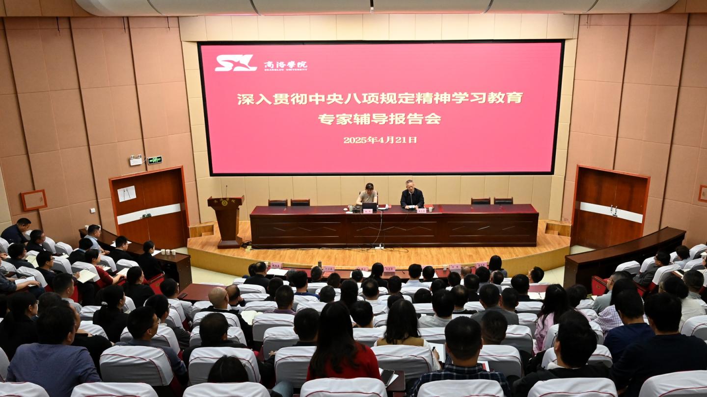 4月21日,党委书记张志昌主持会议主持召开深入贯彻中央八项规定精神学习教育读书班专家辅导报告暨警示教育大会。省纪委委员、省纪委监委驻省教育厅纪检监察组组长、省委教育工委委员赵军为全校科级以上干部作题为《扎实开展中央八项规定精神学习教育,以优良作风为高等教育高质量发展提供坚强保障》的辅导报告。与会人员集体观看了警示教育专题片《风腐同查同治》。